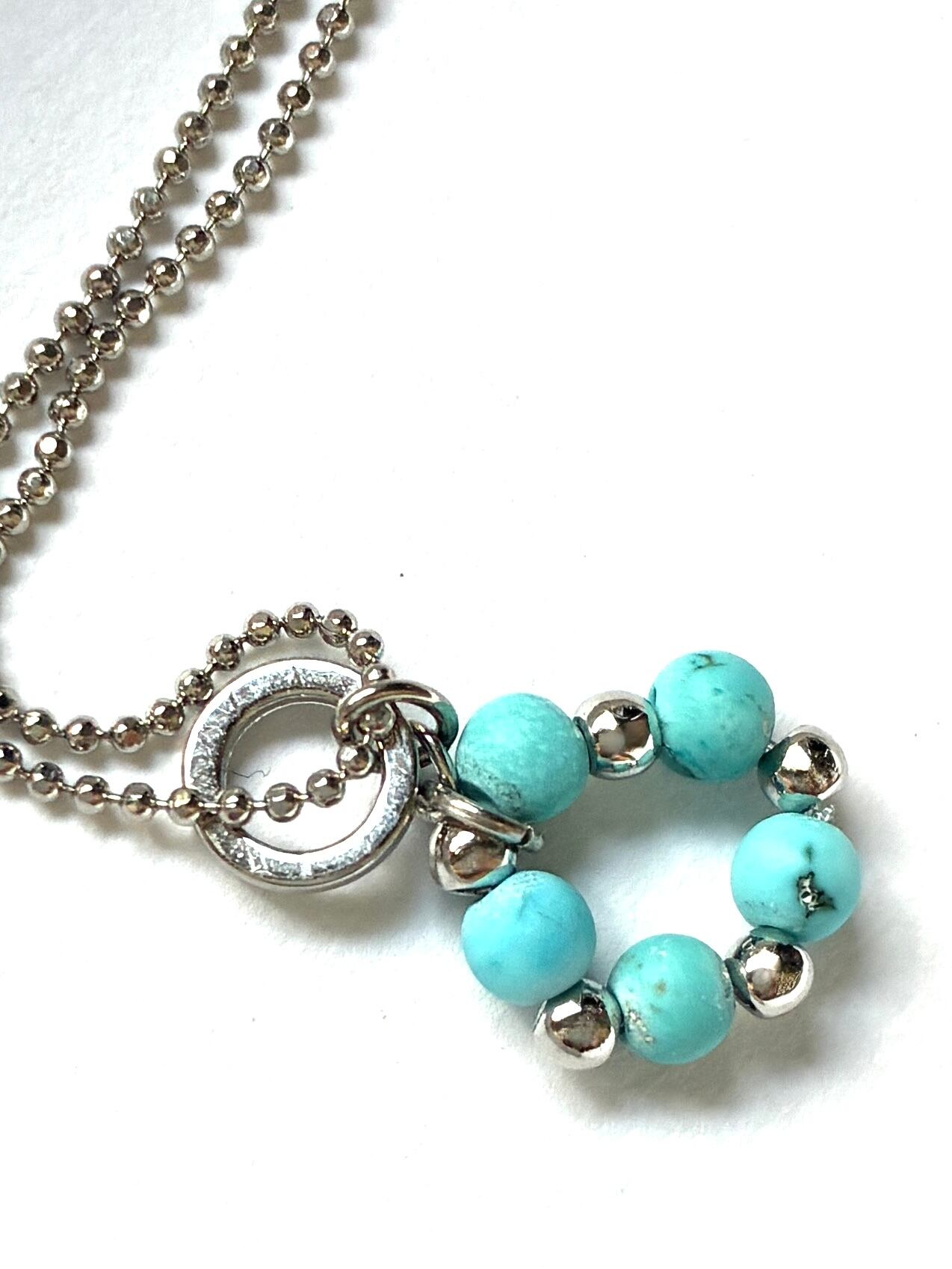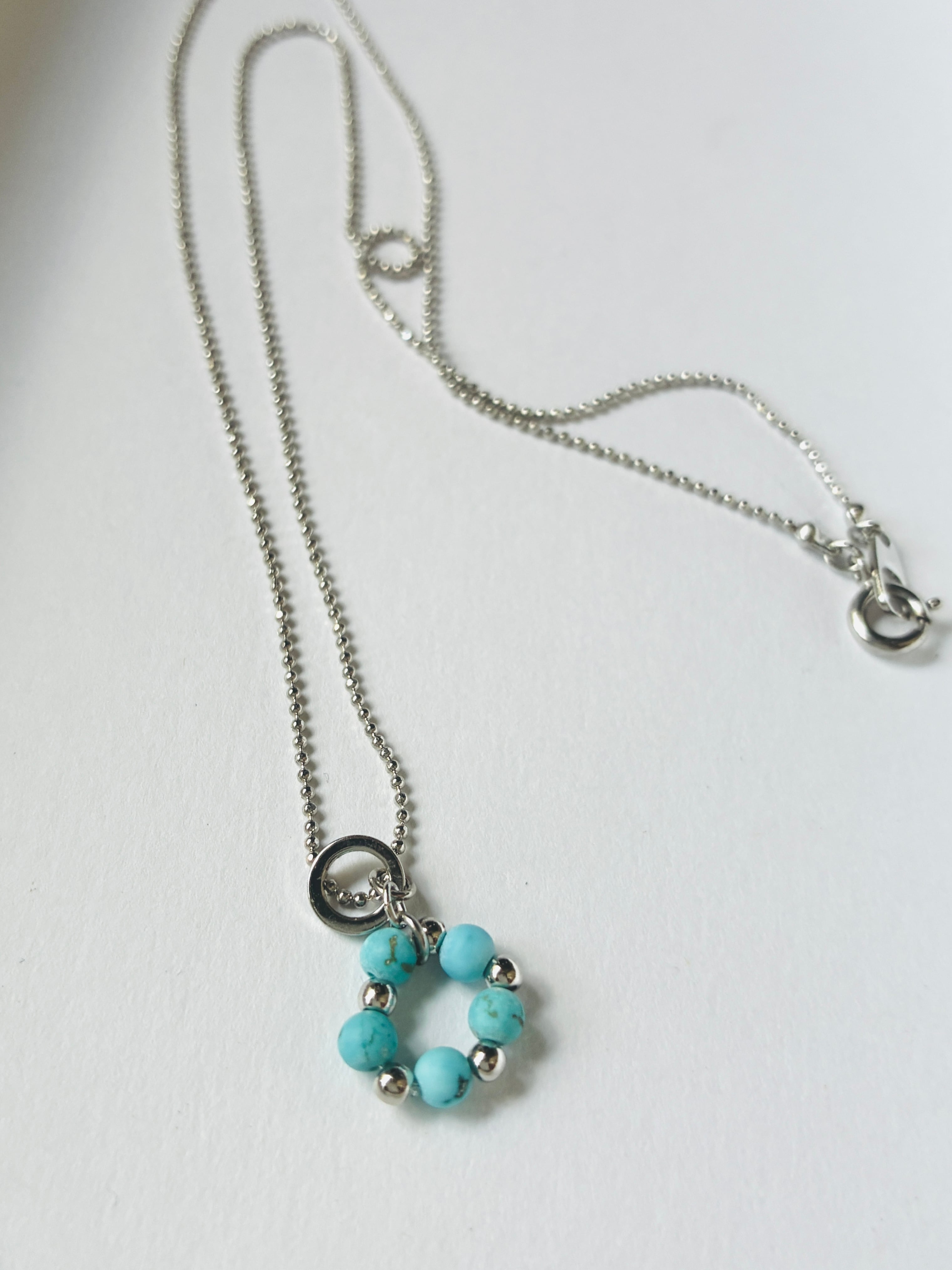 丸い天然石を集めて小さな輪を紡ぎました。