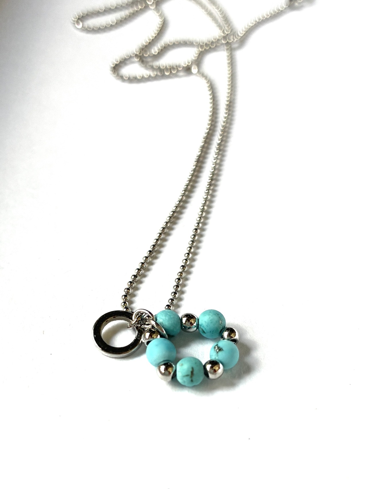 華奢なシルバーのボールチェーンを合わせ、しなやかで上品なネックレスに仕立てました。