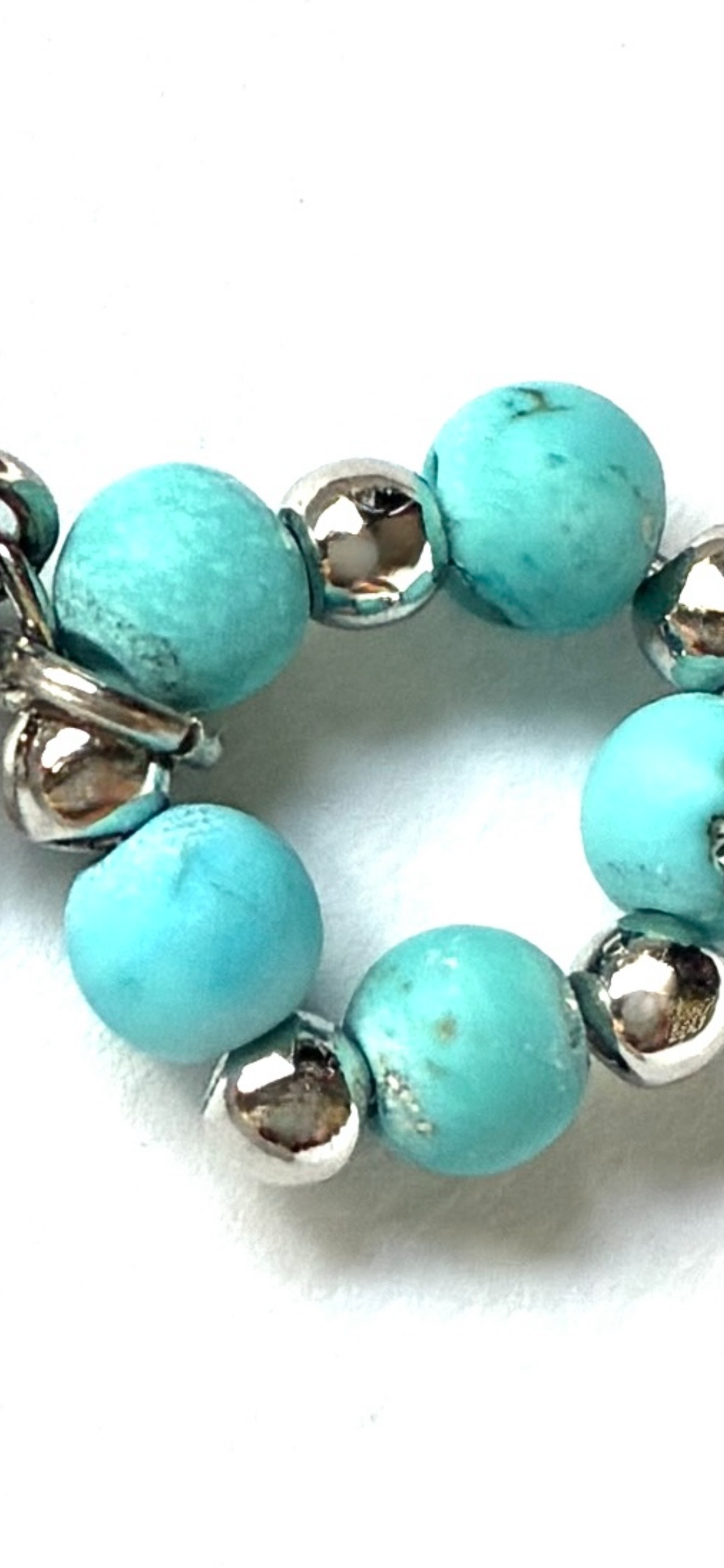 マグネサイトターコイズは心身の平穏とポジティブな変化をもたらす力があると言われているパワーストーン。白いマグネサイトを青く染めたもので、黒い蜘蛛の巣模様(スパイダーウェブ)が美しいのも特徴です。