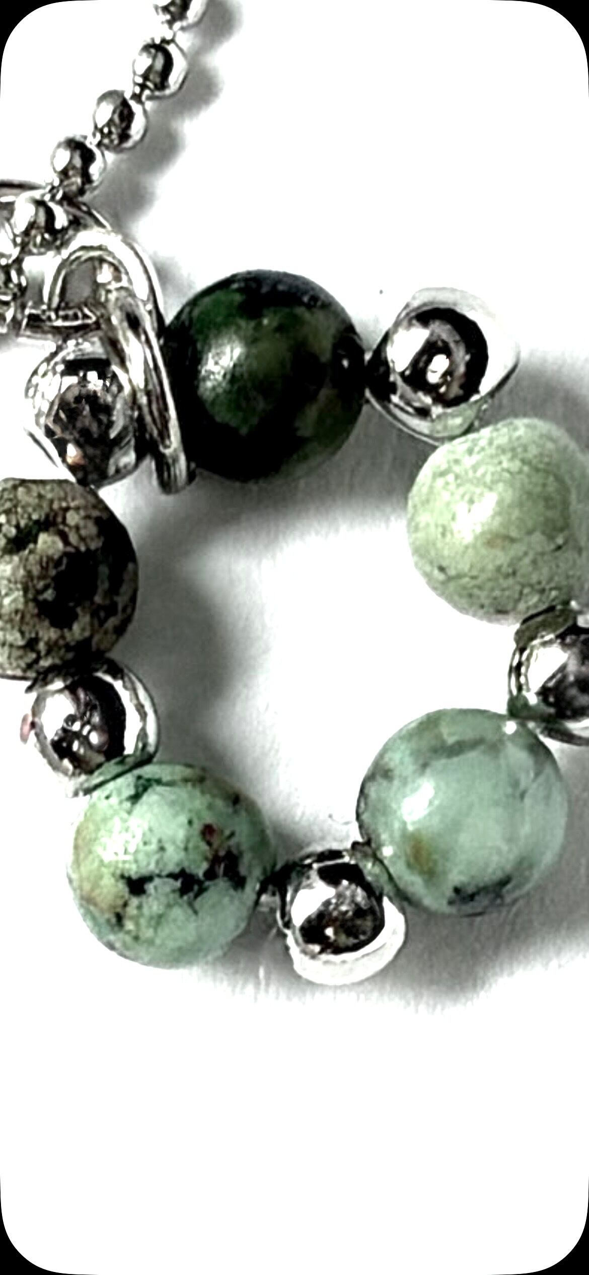 アフリカンターコイズは南アフリカで産出されるジャスパー(碧玉)の一種で、前向きな変化や成長をもたらす守護石とされ、旅のお守りとしても昔から親しまれているパワーストーンです。