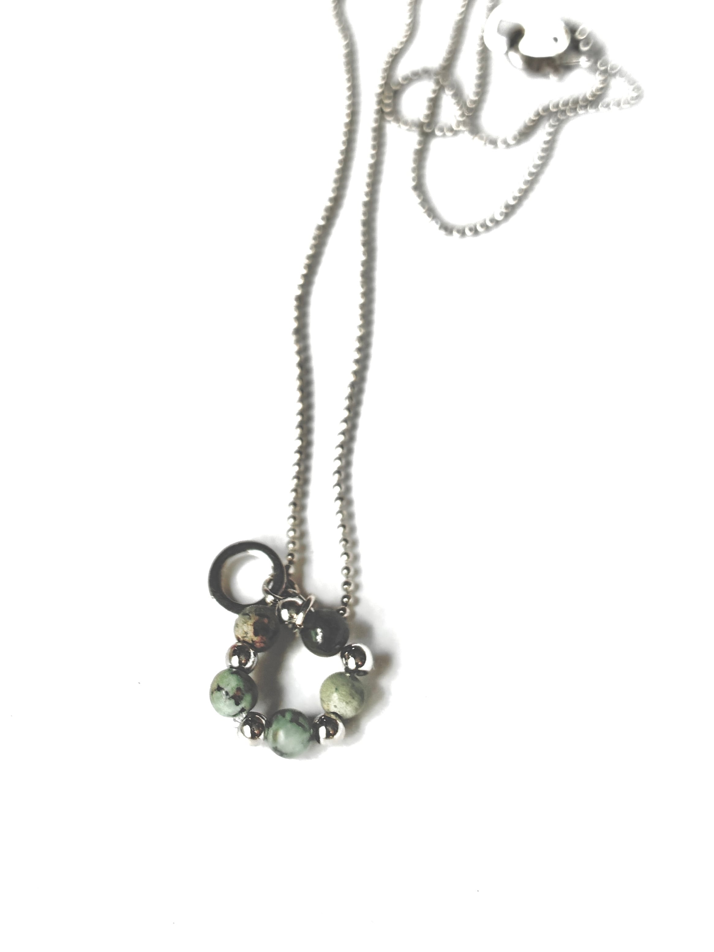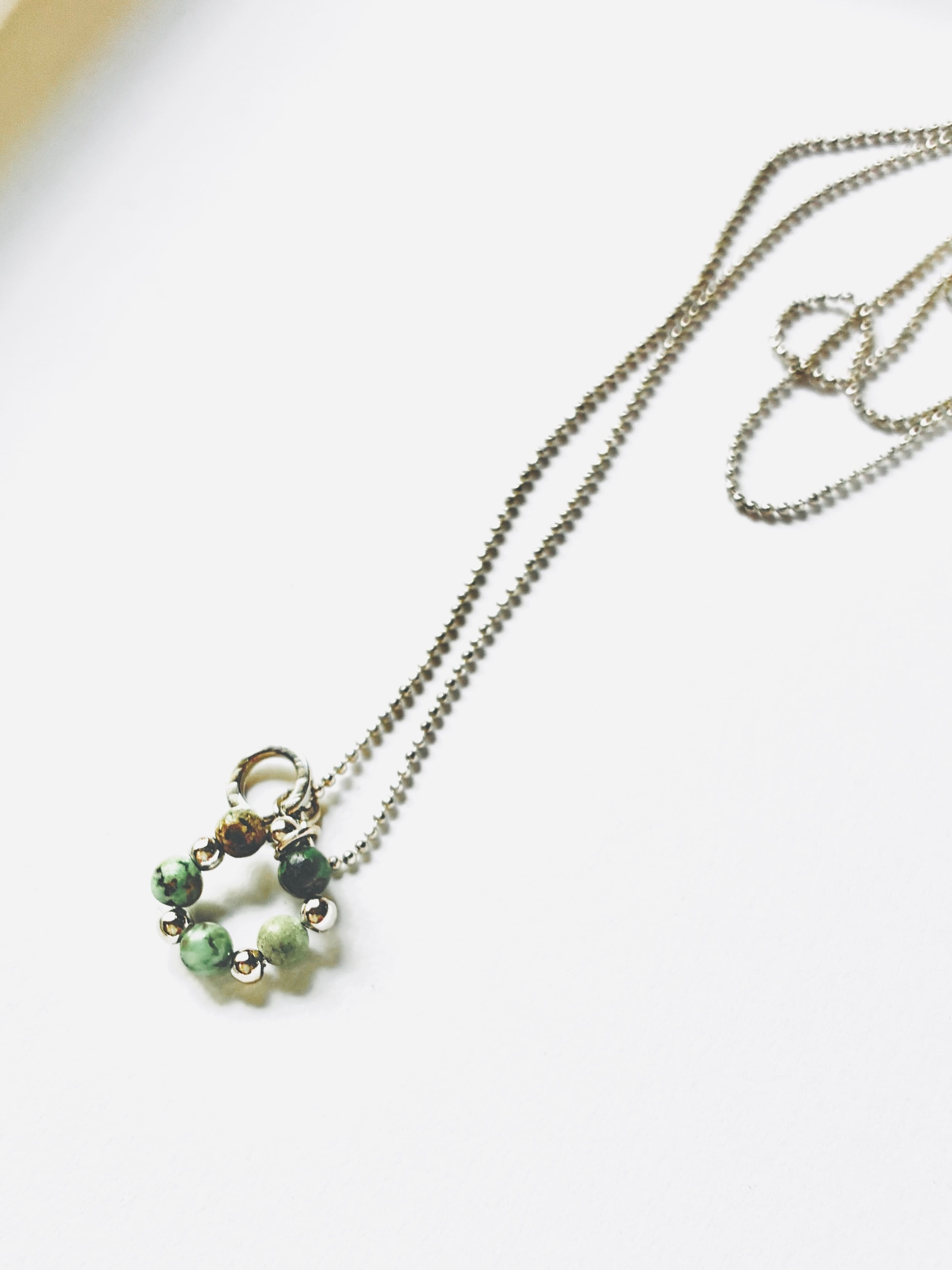 華奢なシルバーのボールチェーンを合わせ、しなやかで上品なネックレスに仕立てました。