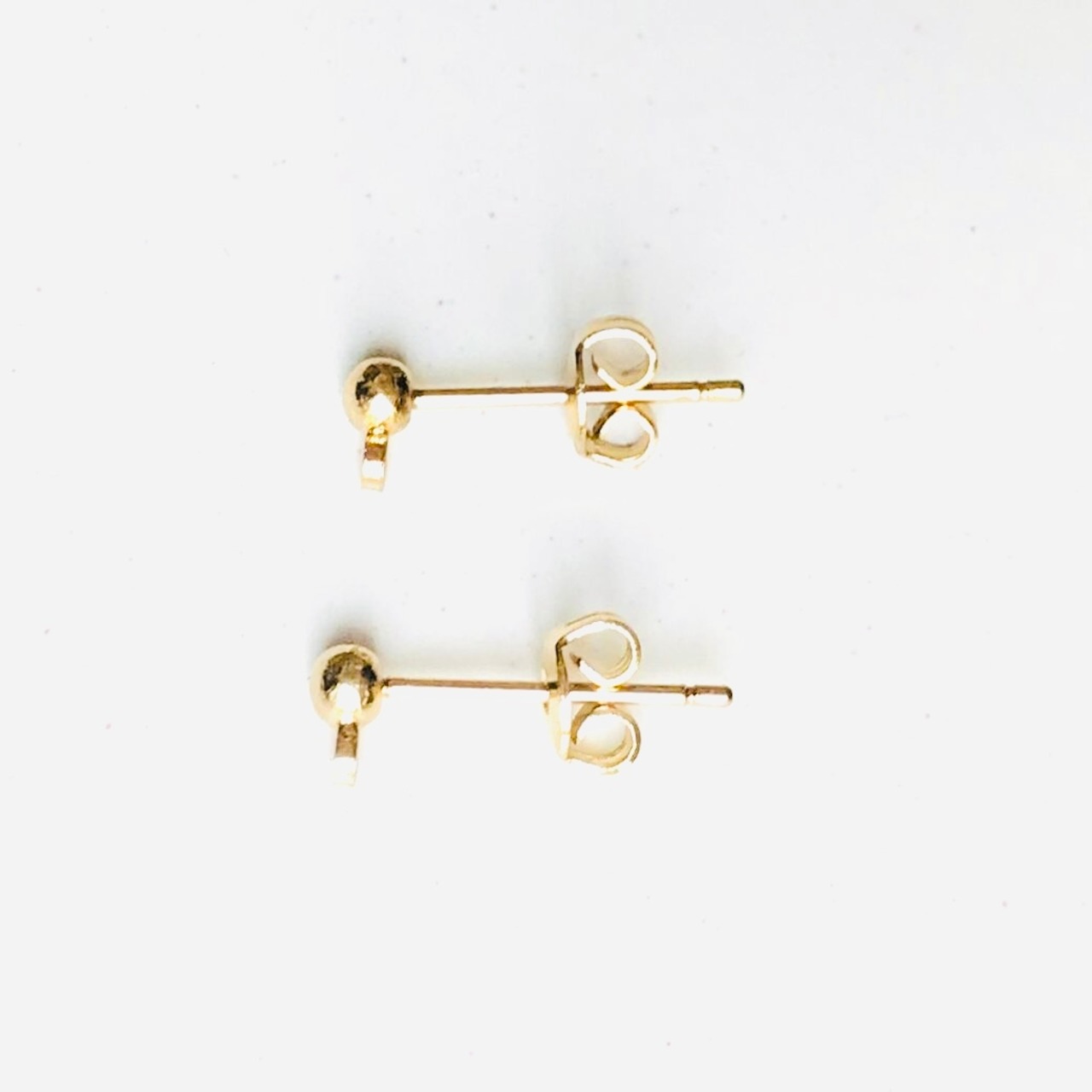 ビーズの色は透明感のあるゴールド。優しいカラーです。チャームの中にはクリアビーズを忍ばせたので揺れるたびにキラッと光ります。