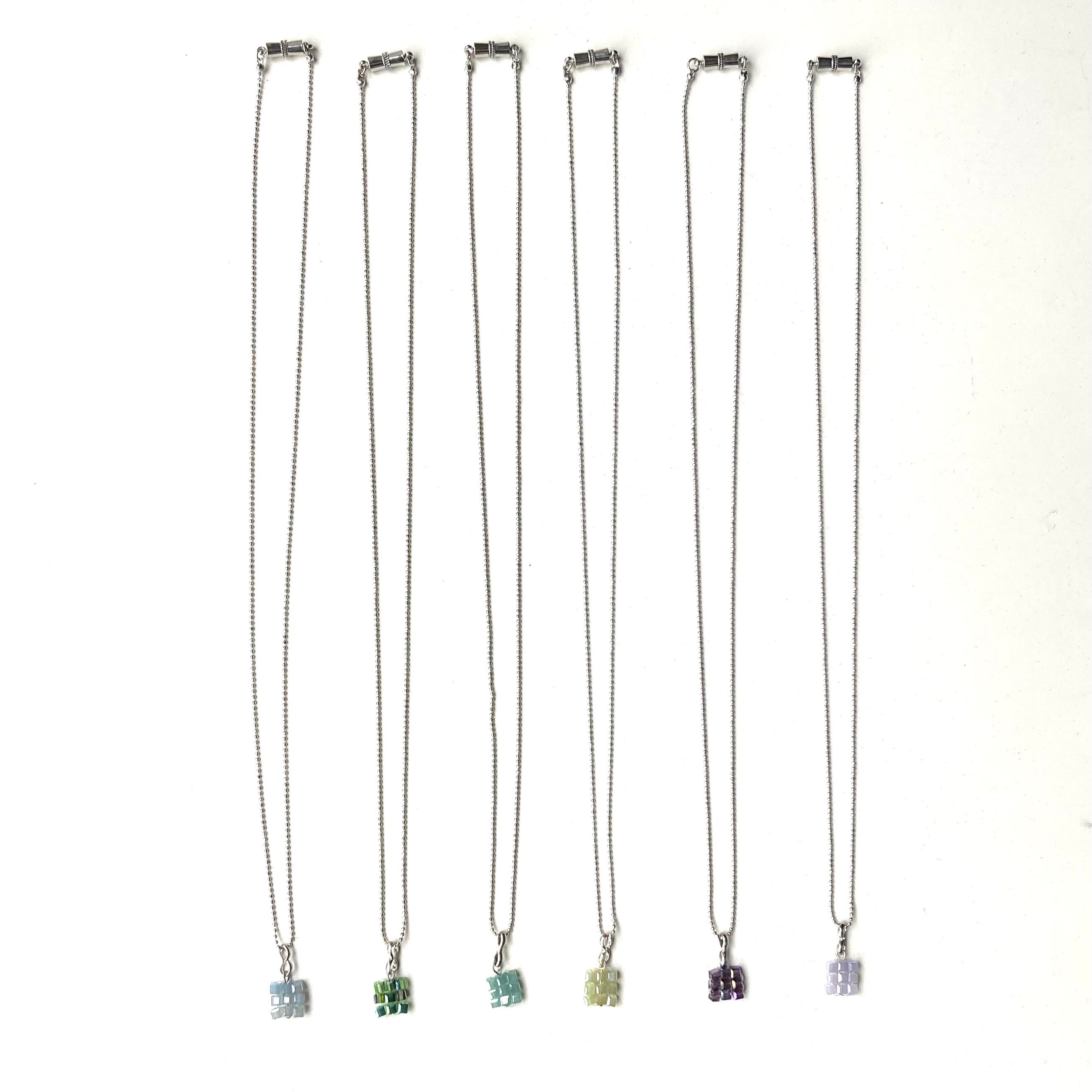ネックレス全長 約44.5cm、チャーム(ガラスキューブ)部分 約1cm弱