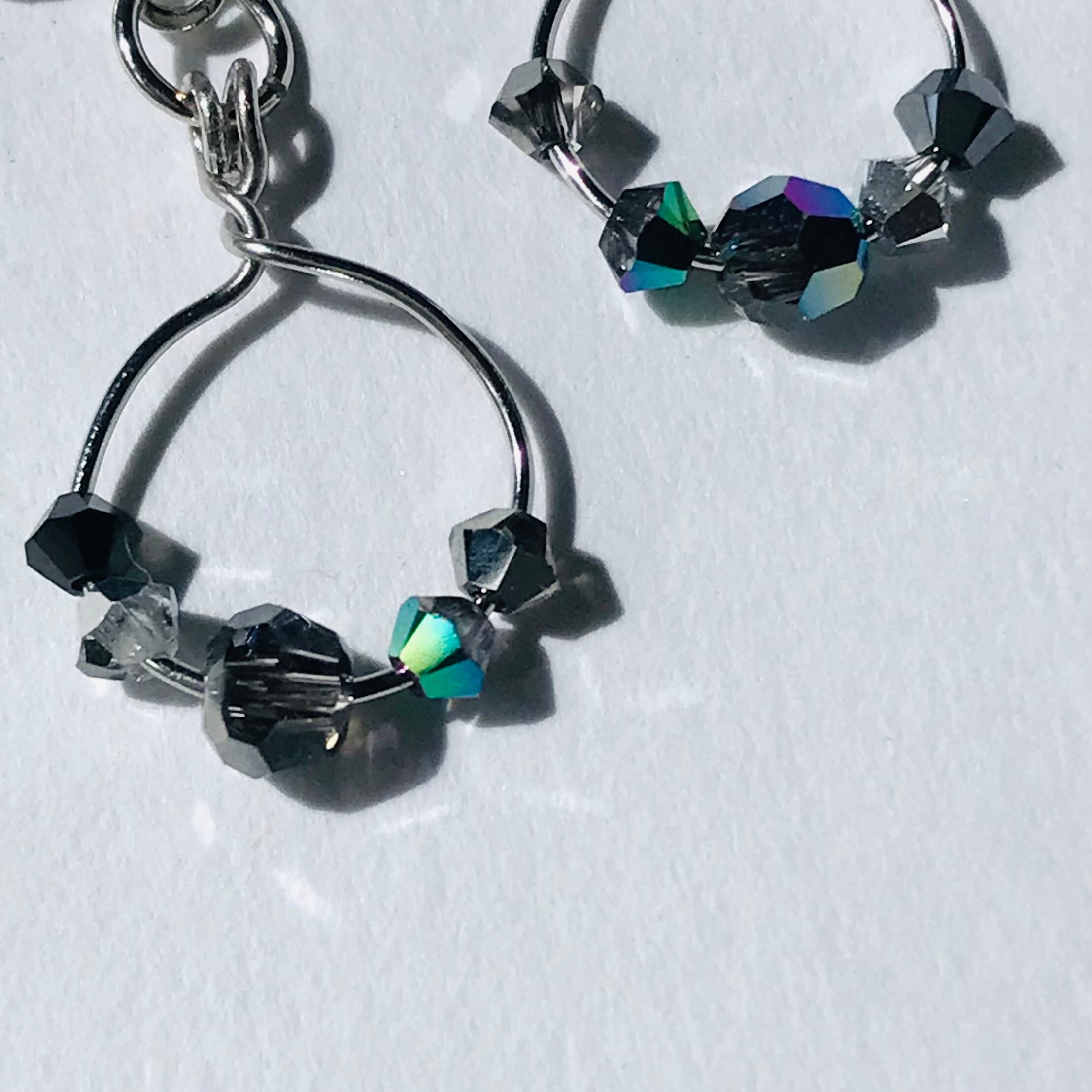 スワロフスキーが揺れるワイヤーピアス&イヤリング:モノトーン