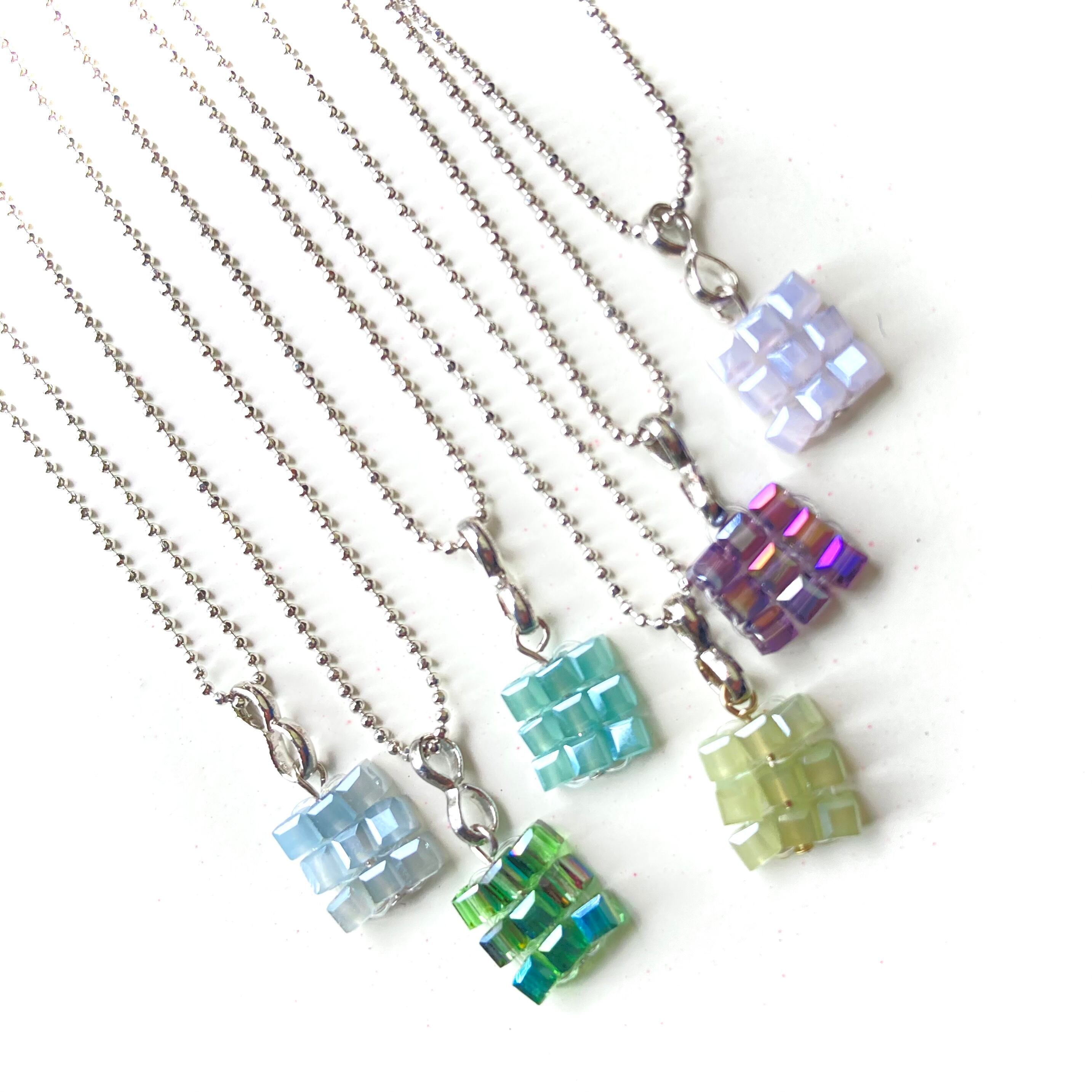 ネックレス全長 約44.5cm、チャーム(ガラスキューブ)部分 約1cm弱